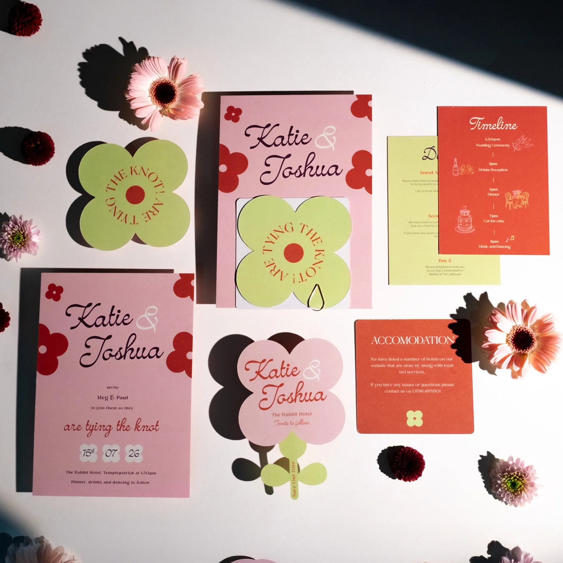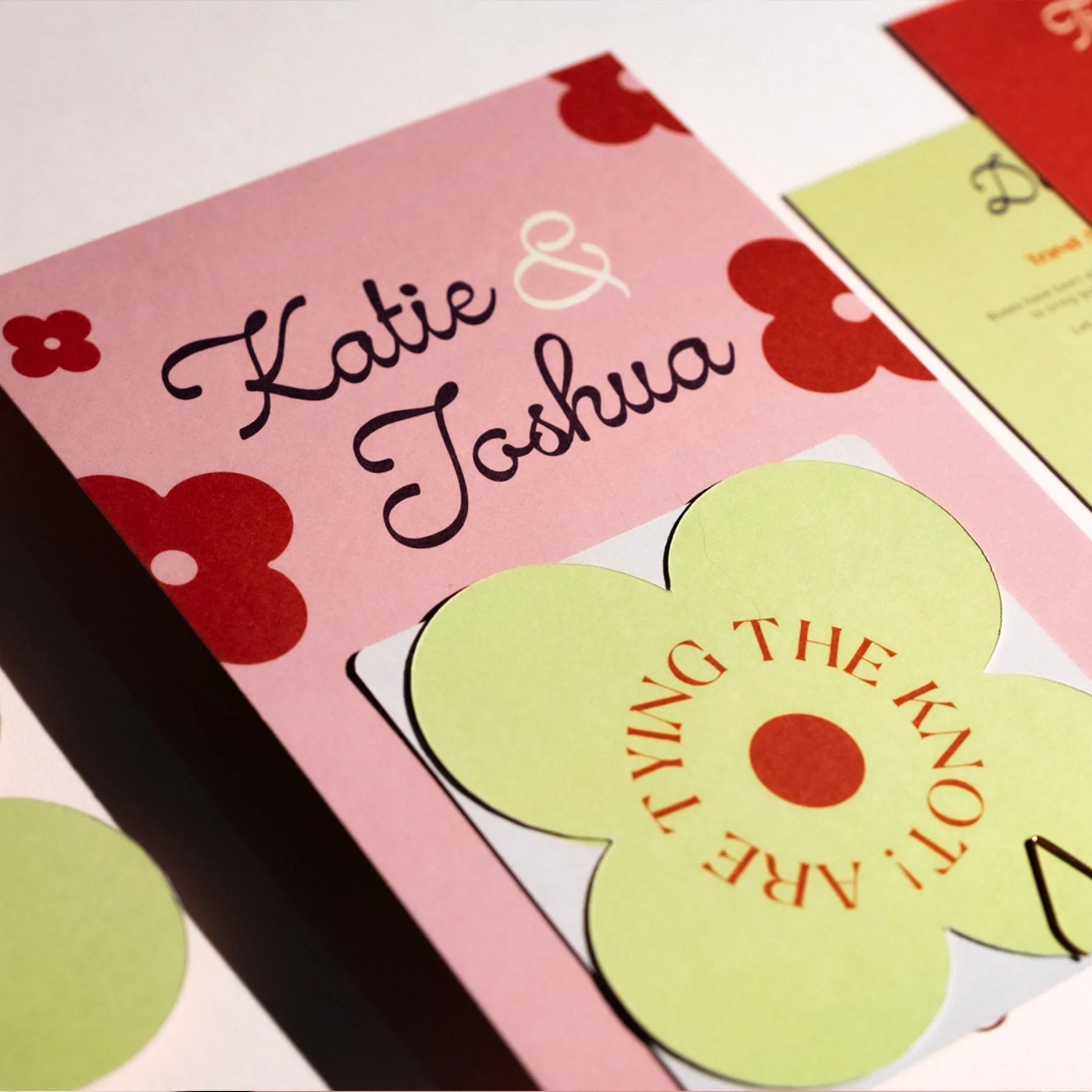 The Day Invite, Details Card, and RSVP stack up flawlessly for a cohesive presentation. It's the ideal way to let that bright, retro design shine through—making a huge statement while still being totally useful!
