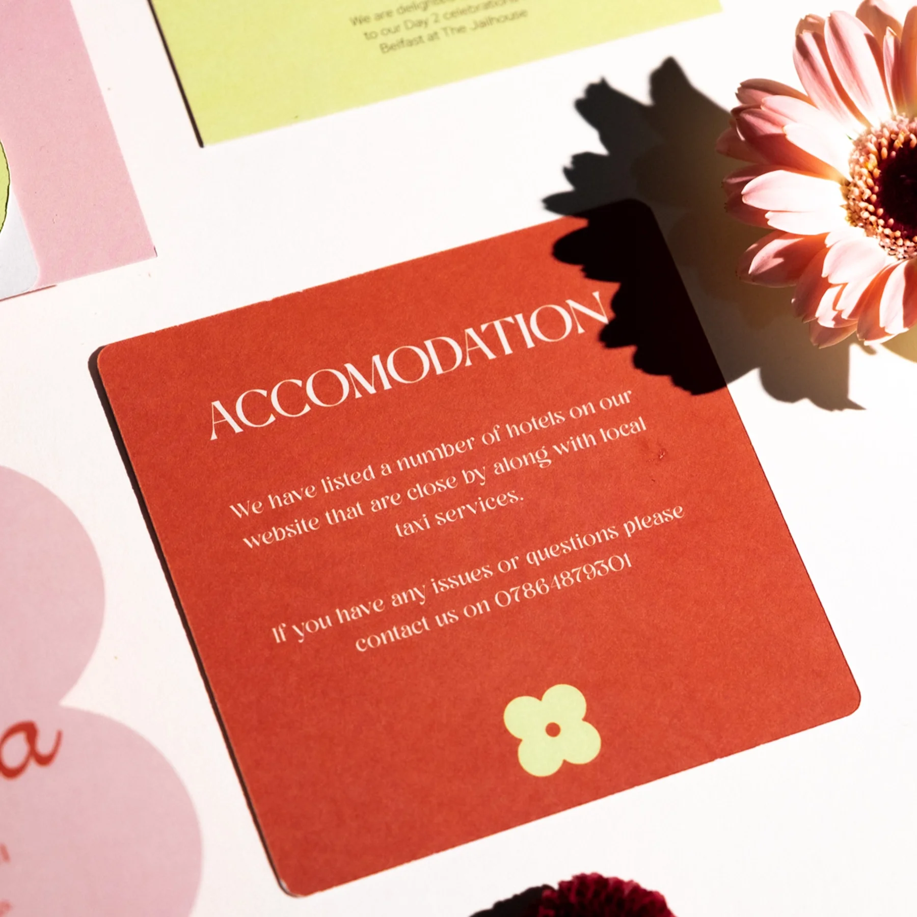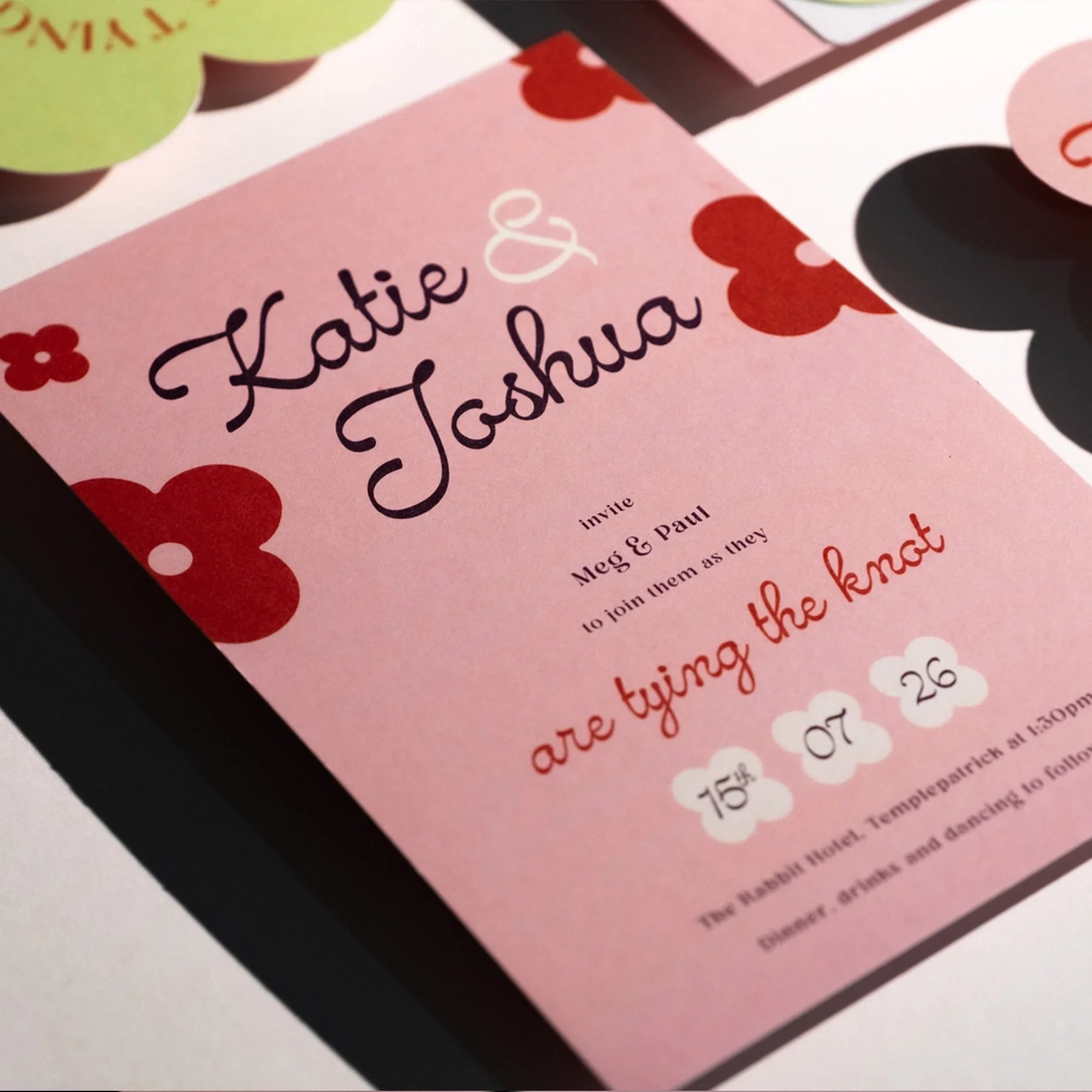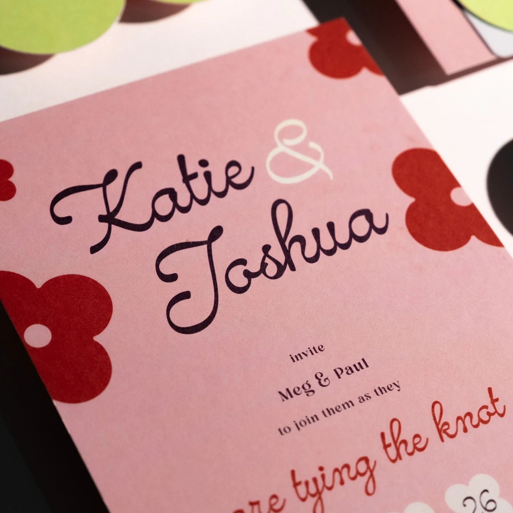 This invite is a vibe! Printed in A5 size, it arrives looking sharp with a bright pink envelope. The addition of those cute retro flowers and soft curved font is pure perfection, enhancing the sophisticated style.