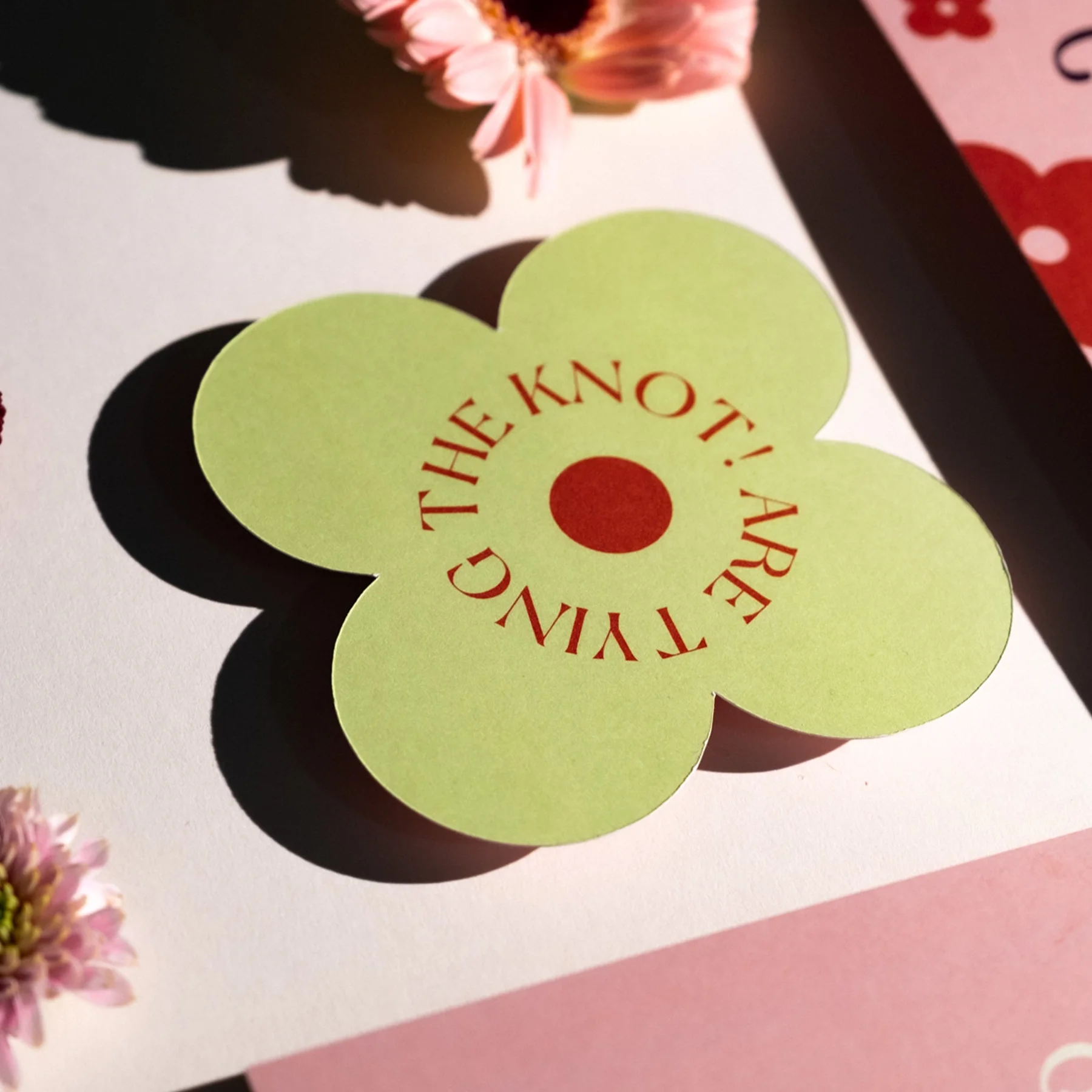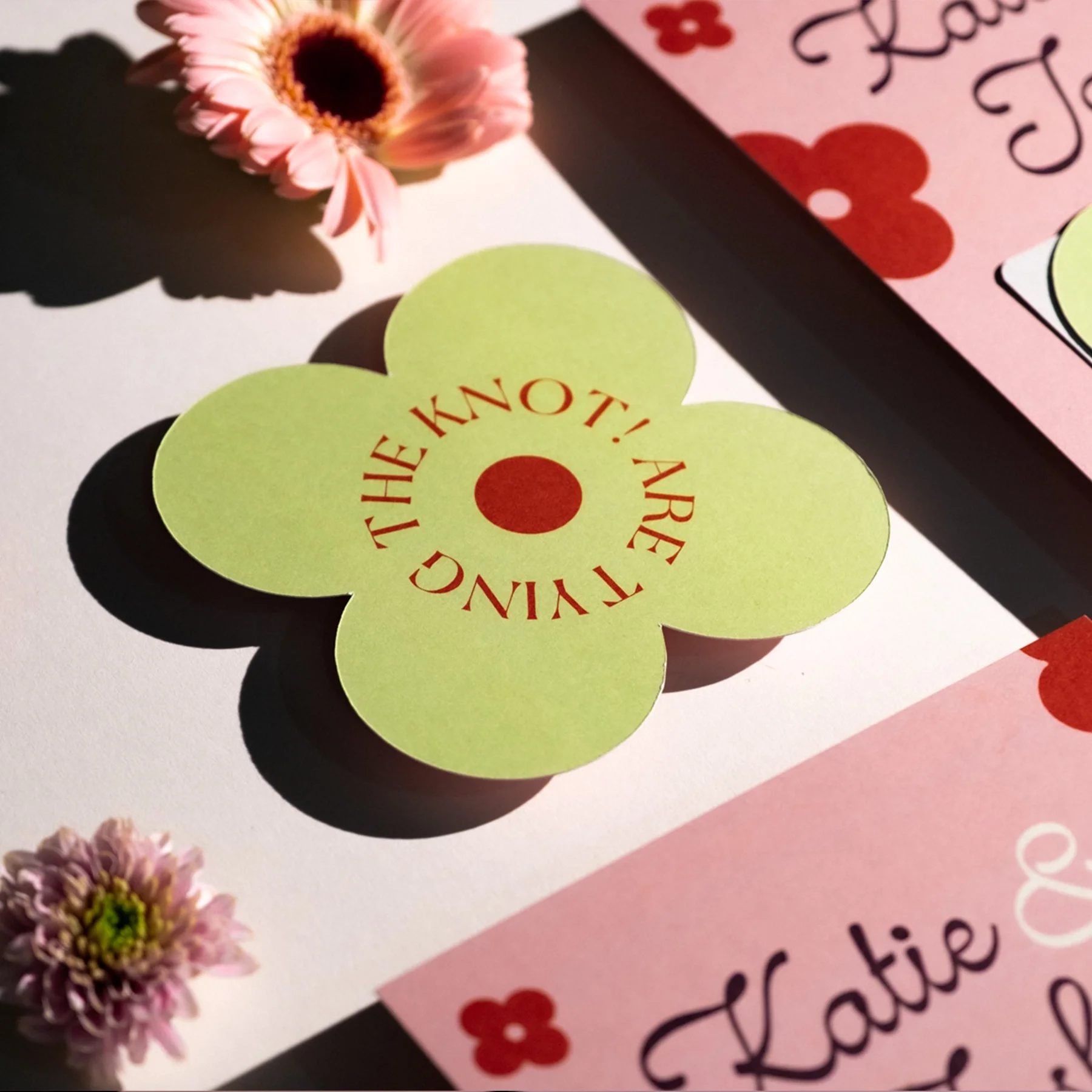 This opener is blooming cute! Our Save the Date matches the full suite flawlessly, and its adorable flower shape makes it the sweetest little keepsake your guests will receive!
