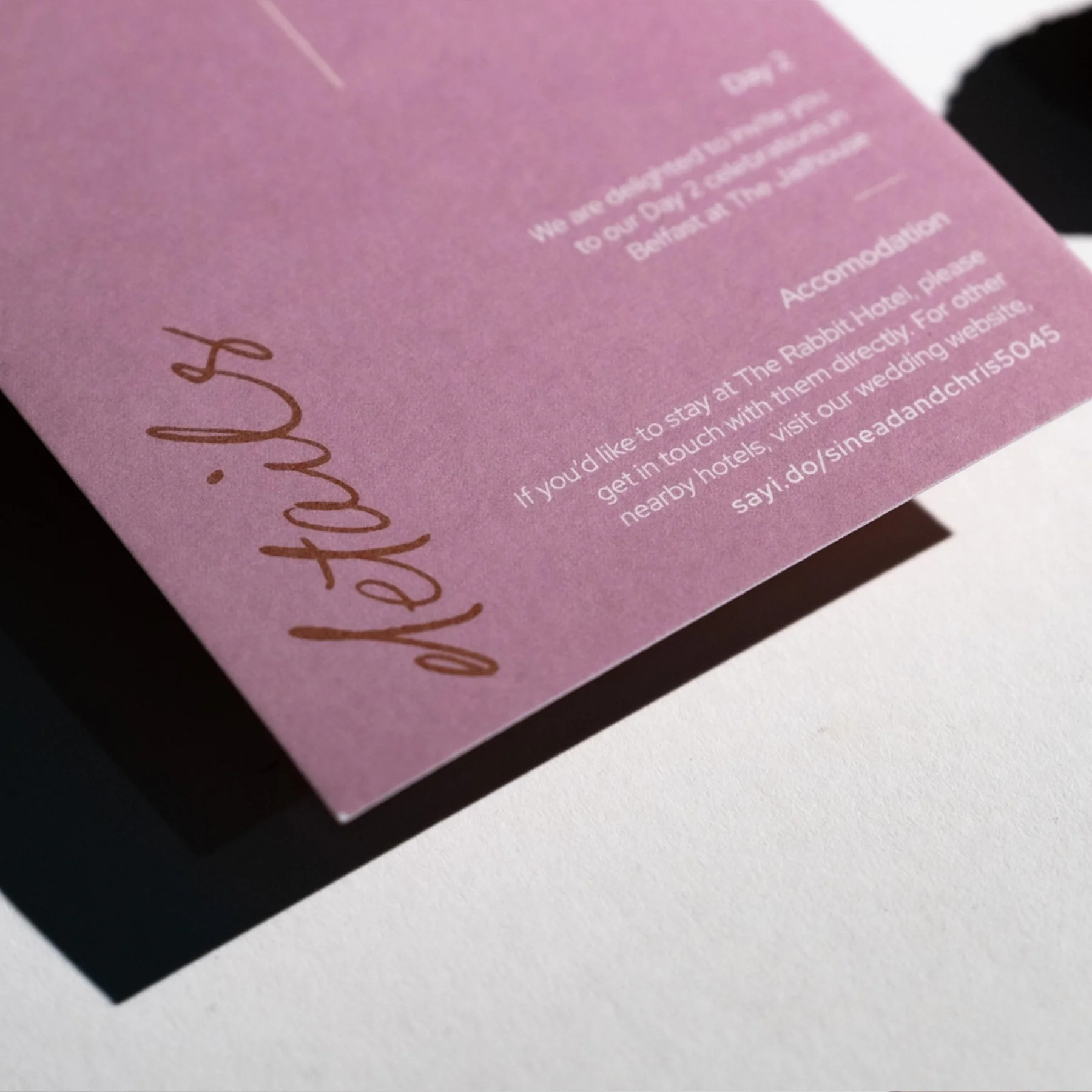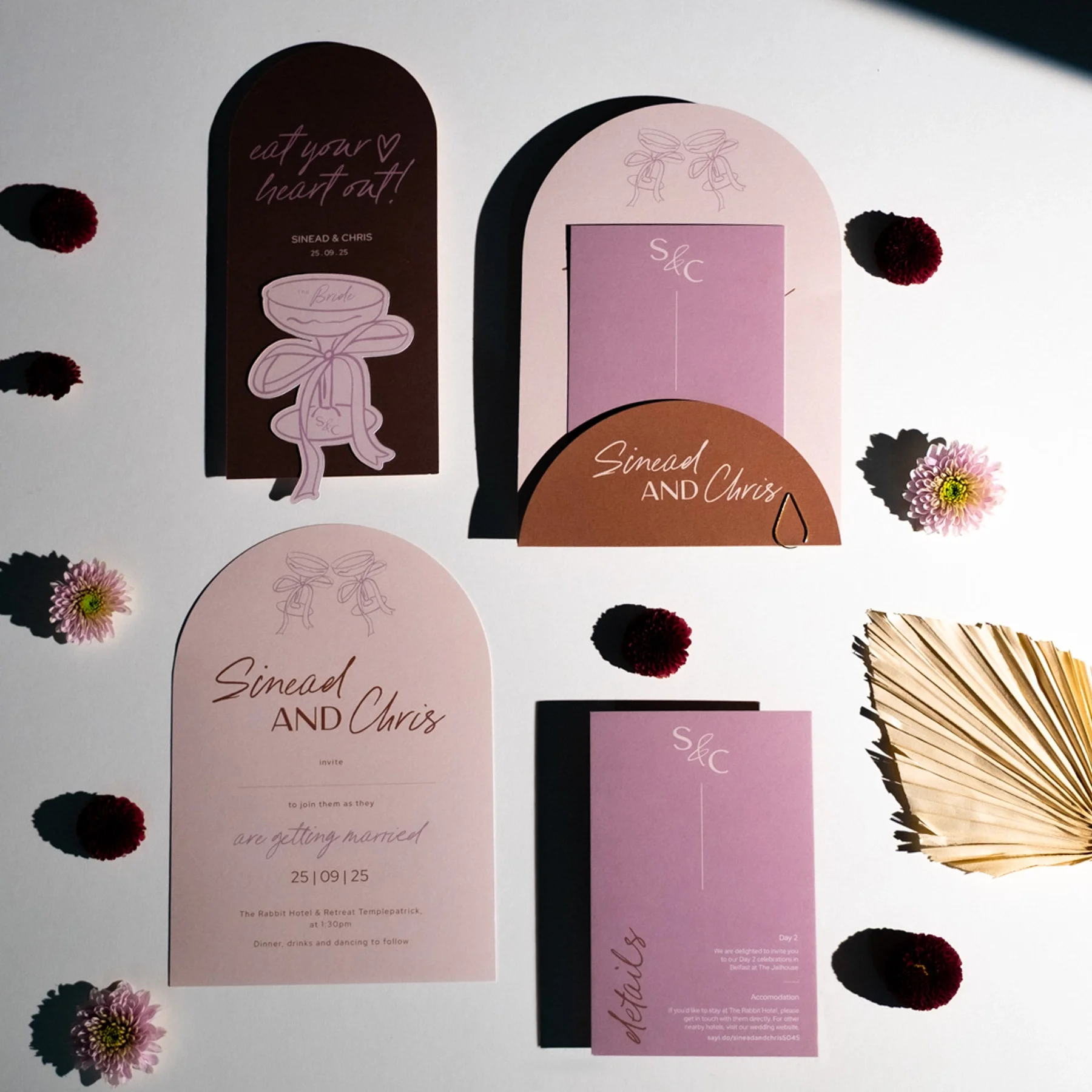 The Sinead Collection is the perfect opportunity for layering perfection! The Day Invite, Details Card, and RSVP all fit together flawlessly, creating a beautifully cohesive and stylish presentation.