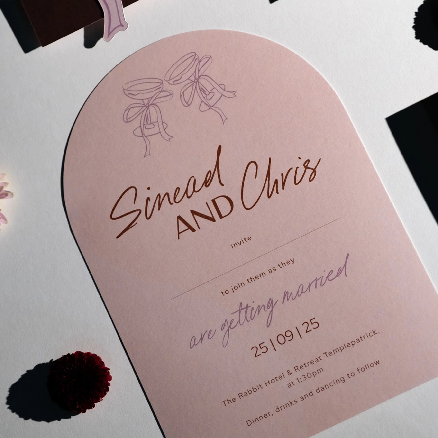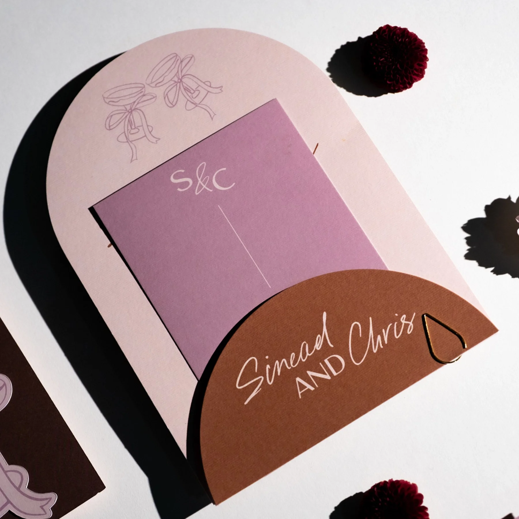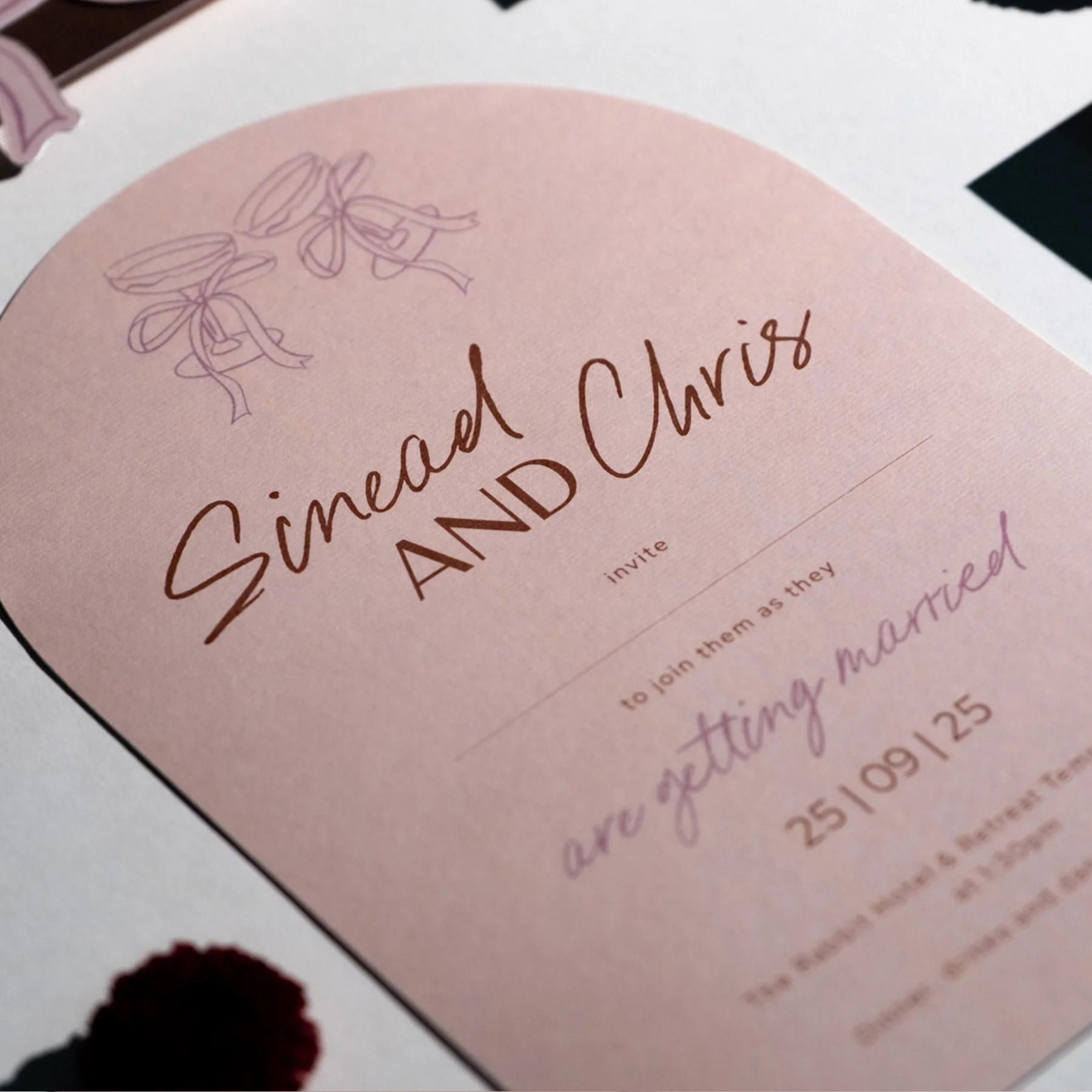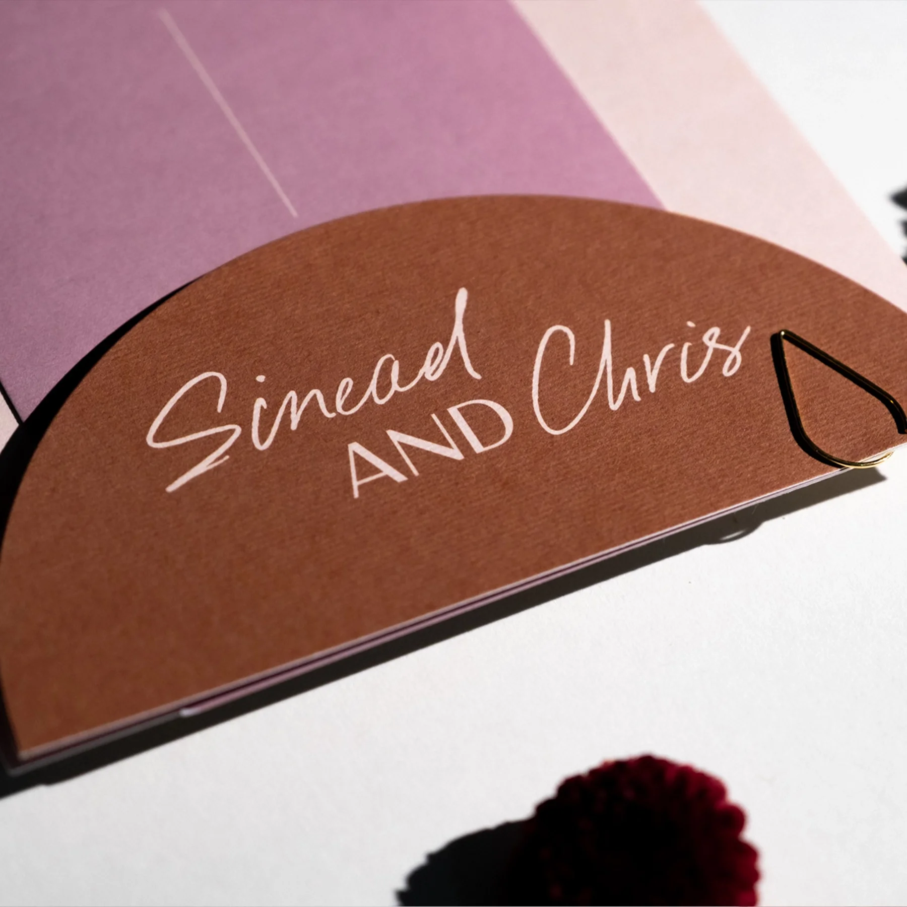 Printed in A5 size, your Day Invitation looks dreamy when matched with a rich terracotta envelope. That architectural upper arch shape is the final touch, enhancing the sophisticated design of your whole suite!